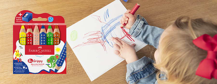 Sada 6 pastelek Faber-Castell Grippy je navržena pro nejmenší děti od 2 do 5 let. Díky ergonomickému trojhrannému tvaru a protiskluzovým bodům se pastelky dobře drží a pomáhají rozvíjet správný úchop.