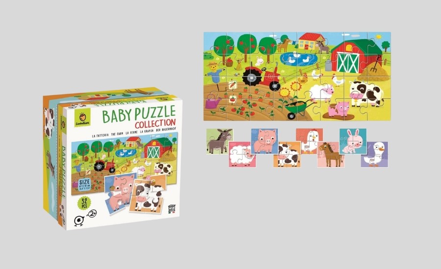 Oboustranné puzzle pro nejmenší z farmy budou děti milovat. Kartičky se zvířátky jsou oboustranné. Nejmenší děti budou skládat jednoduché puzzle zvířátek ze 4 obrázků. Větší děti si již dokáží poskládat obrázek farmy, který sestaví ze 32 obrázků. Tyto puzzle tak budou děti provázet delší dobu a stále budou zábavné. Puzzle jsou vhodné pro všechny a zabaví již nejmenší děti od 2 let. Obsah balení oboustranné puzzle 1×32 ks nebo 8×4 kusů.