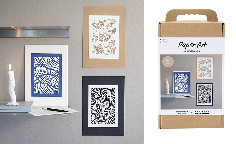 Tato kreativní sada vznikla ve spolupráci s designérkou Kristou Tolstrup a umožní vytvořit tři moderní obrazy z kartonu, které skvěle doplní interiér. Pomocí nožíku a šablon se vyřežou stylové motivy s čistými liniemi a výraznými strukturami. Díky jednoduchému vrstvení vzniknou 3D obrazy, které vyniknou samostatně nebo v kombinaci s plakáty či fotografiemi. Obrazy lze kombinovat do galerie na zdi – pro živý, hravý a zároveň elegantní vzhled. Sada je vhodná i pro začátečníky – žádná složitá technika, jen přesné řezání a lepení. Výsledek je vždy profesionálně působící, moderní dekorace s osobním dotekem.