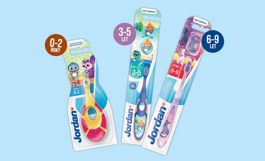 Značka Jordan je skandinávská značka ústní hygieny, která se stará o první zoubky až po ty dospělé. Vybírat můžete z několika typů kartáčků podle věku dítěte. Kartáčky mají měkké štětiny přizpůsobené citlivým dásním, které však efektivně čistí. Model pro děti od 0 do 2 let slouží navíc zároveň jako kousátko, a tak může být používán i jako hračka, která zároveň čistí zoubky. Díky svému tvaru se také skvěle drží. Modely pro větší děti jsou moc krásné a najdete na nich roztomilé postavičky, které budou děti milovat.